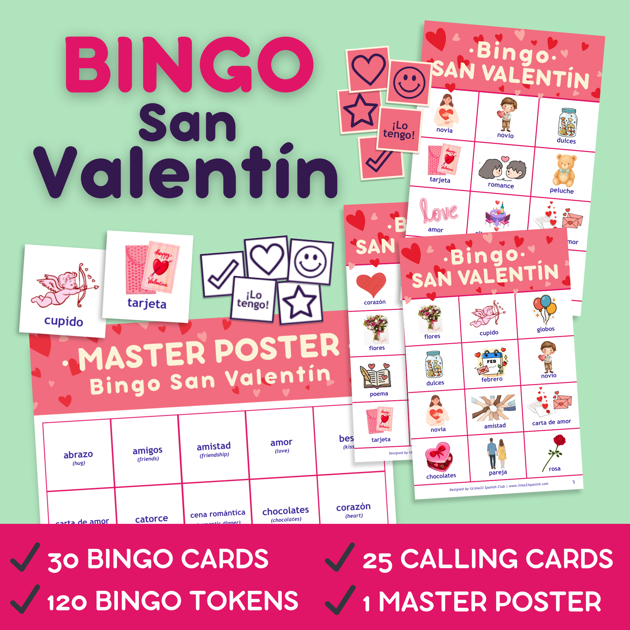 This San Valentin Bingo Game focuses on 25 words, a perfect way for students to build confidence, pronunciation, and vocabulary recognition while playing and having fun.