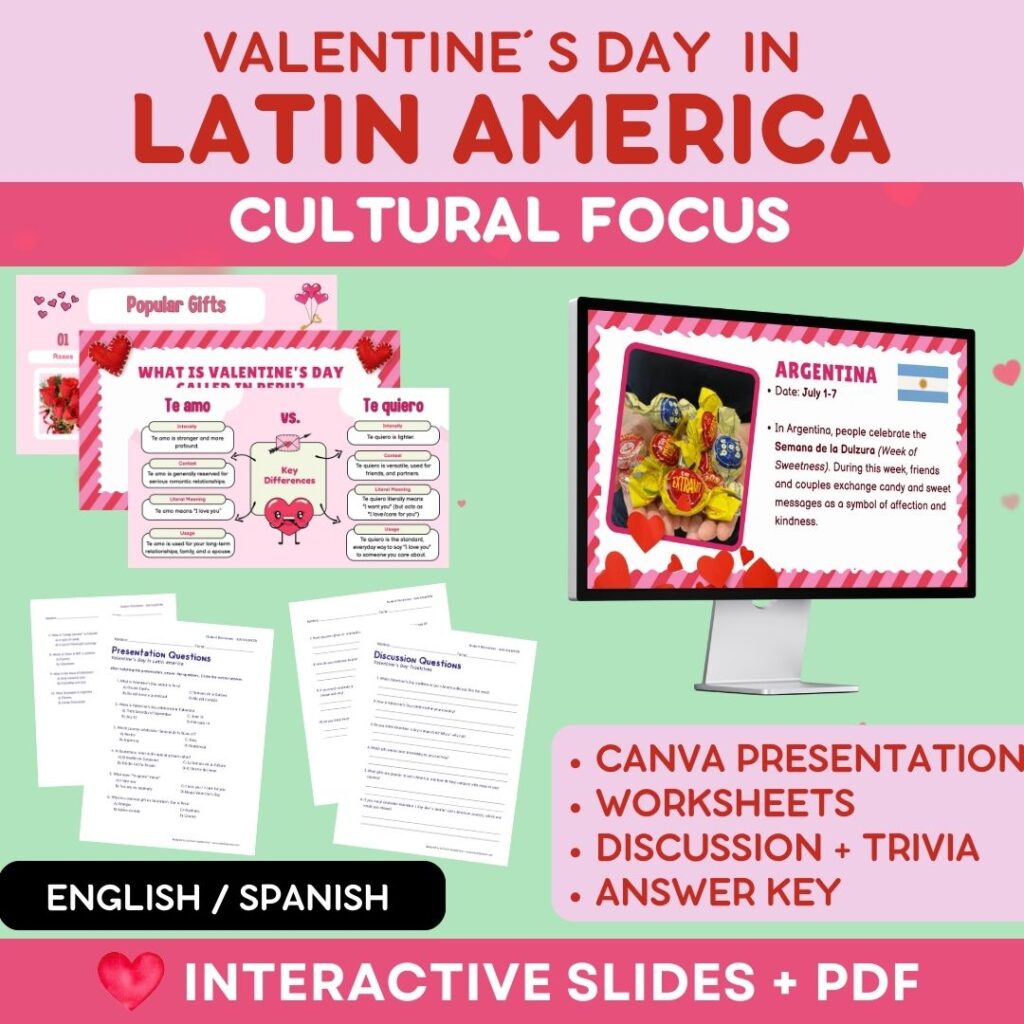 This low-prep resource encourages cultural comparison, critical thinking, and class discussion. Your students will learn how Valentine’s Day is celebrated in Latin America, cultural traditions and celebrations, popular gifts and street customs, key vocabulary and common phrases, and differences between Valentine’s Day and Día del Amor y la Amistad.