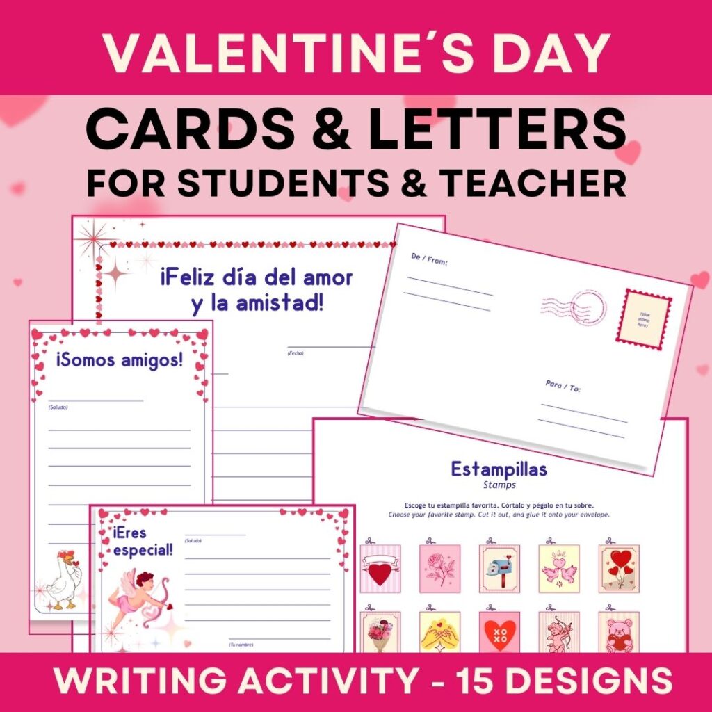 A Special Note – Valentine’s Day Cards & Letter Writing Activity helps students practice Spanish writing by creating kind, meaningful notes for their classmates. This activity promotes a positive classroom environment while reinforcing language skills.